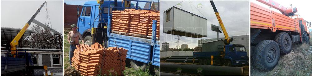 У нас Вы можете заказать услуги кран манипулятора КАМАЗ, в том числе повышенной проходимости (вездеход). Цена аренды различных машин приведена в таблице. Грузоподъёмность машин - от 3 до 10 тонн. Грузоподъёмность стрелы кран манипулятора – от 2,5 до 7 тонн, длинна стрелы кран манипулятора от 7 до 19,5 метров.