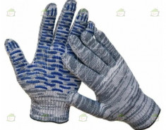 Перчатки 6 нитей серые с ПВХ волна