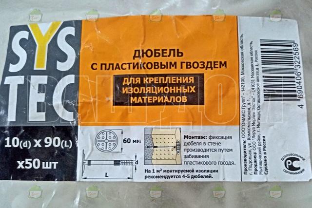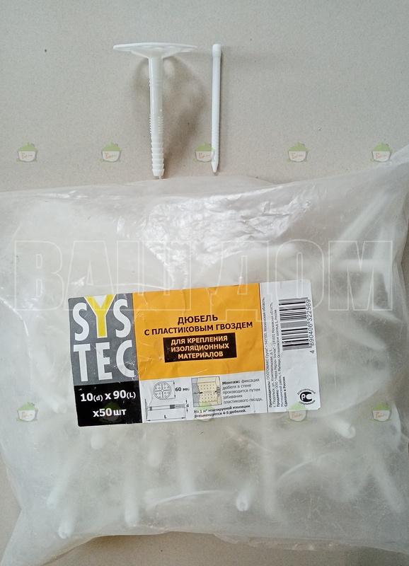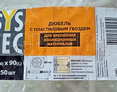 Дюбель с пластиковым гвоздем для крепления изоляционных материалов 10* 90 мм.